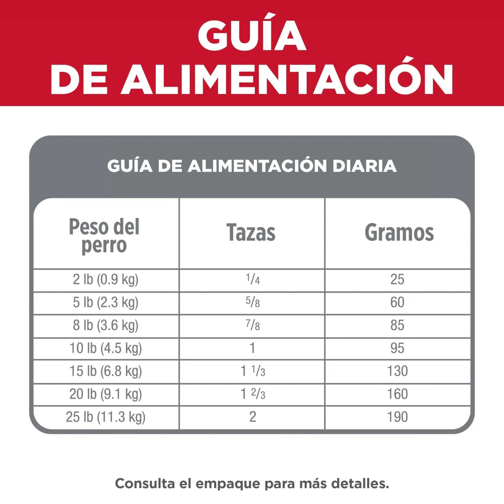 Con Hill's Science Diet Adult Small & Mini Pollo y Arroz Integral, tu perro recibe la nutrición que lo hace fuerte, saludable y feliz, del tamaño perfecto para él. Dale amor a tu perro, dale Hill's Science Diet.