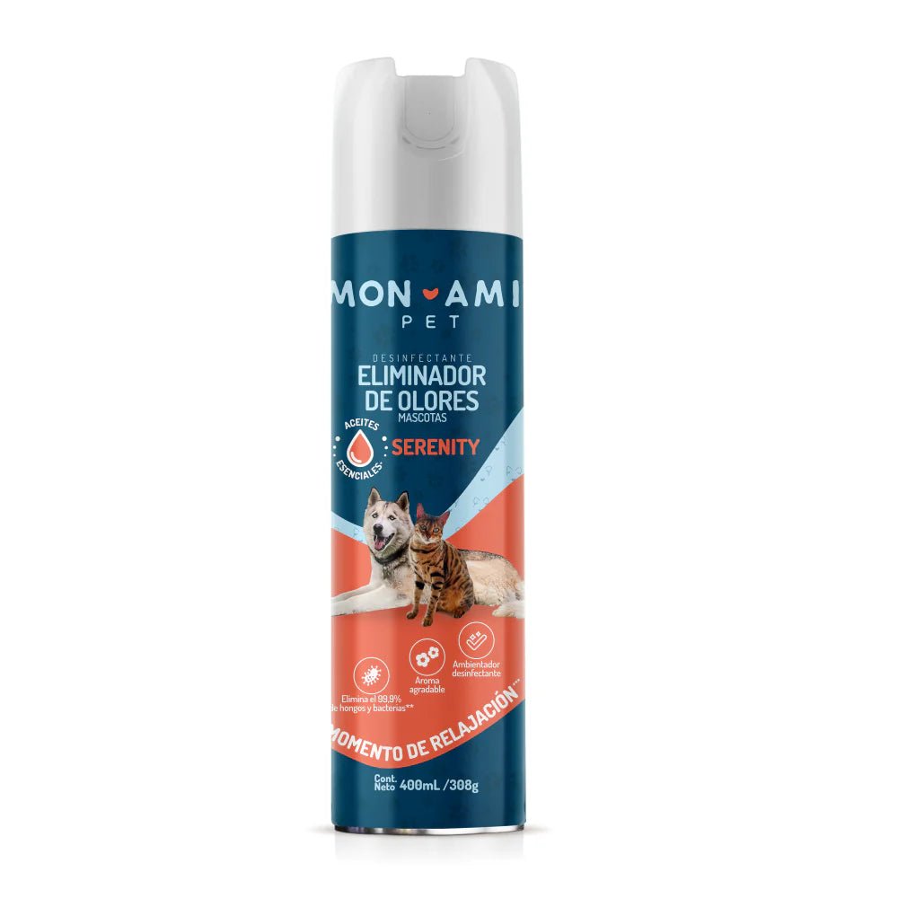 Despídete de los malos olores y dale a tu hogar un ambiente fresco, limpio y lleno de armonía con el Eliminador de Olores Serenity para Perros y Gatos. Su fórmula avanzada 3 en 1 ha sido especialmente desarrollada para desinfectar, neutralizar olores y perfumar de manera efectiva cualquier rincón de tu casa, sin afectar a tus mascotas ni al medio ambiente.