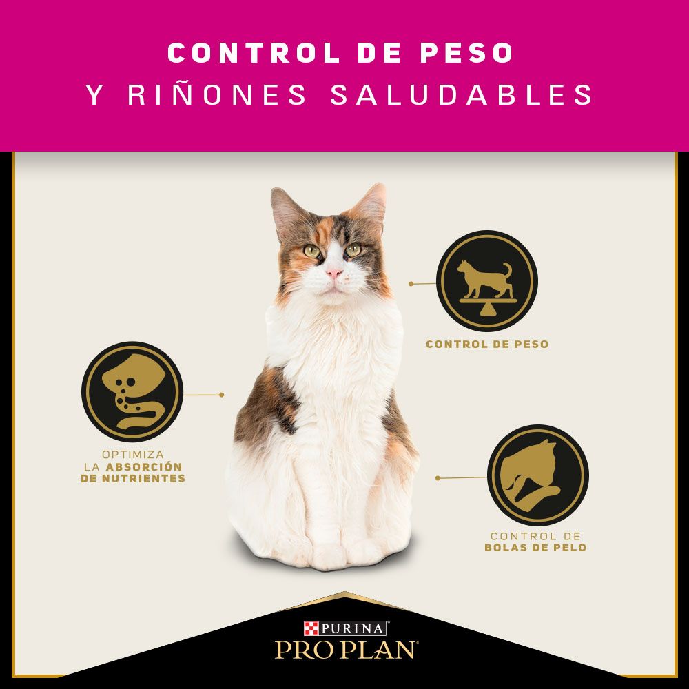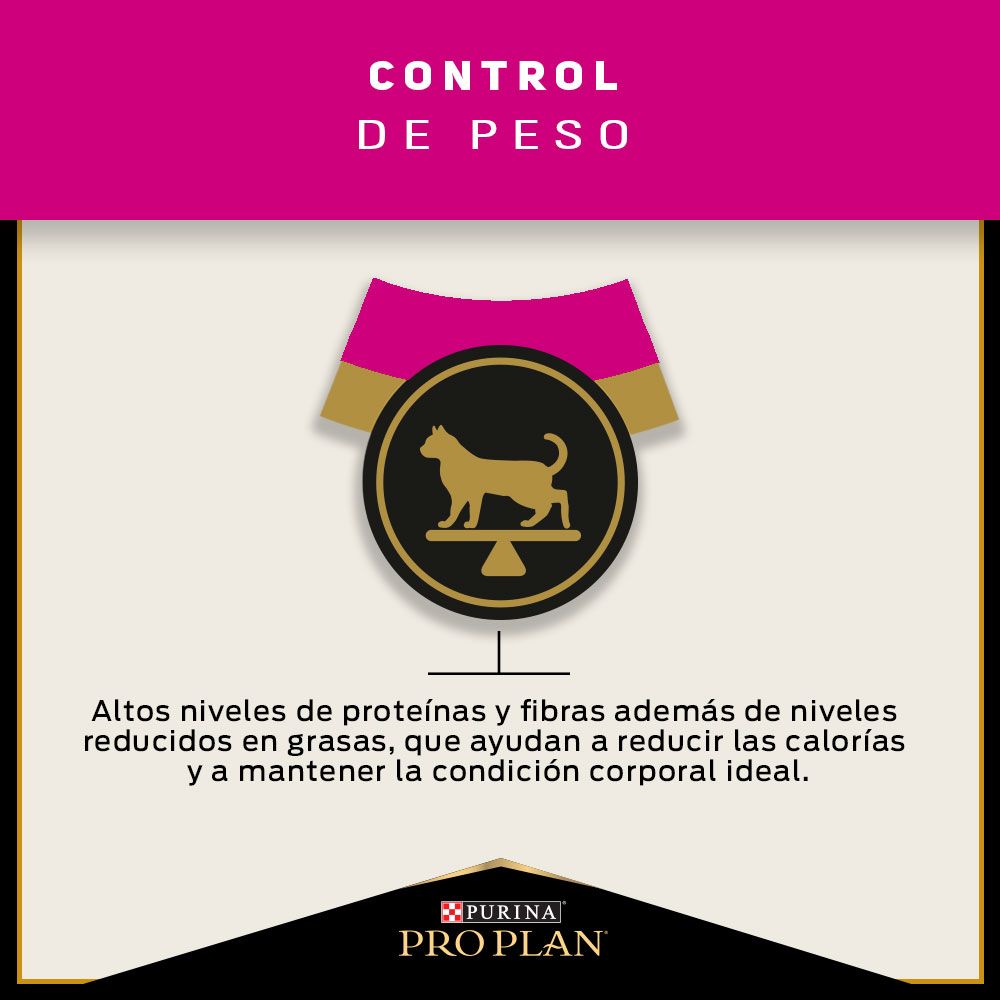 Este alimento premium ofrece una nutrición completa y balanceada, con un nivel de proteínas y fibras ajustado para controlar el peso de manera natural, manteniendo la masa muscular mientras evita la acumulación de grasa innecesaria. Además, sus fibras especiales contribuyen a reducir la formación de bolas de pelo, cuidando su bienestar digestivo y asegurando una vida más cómoda y feliz.