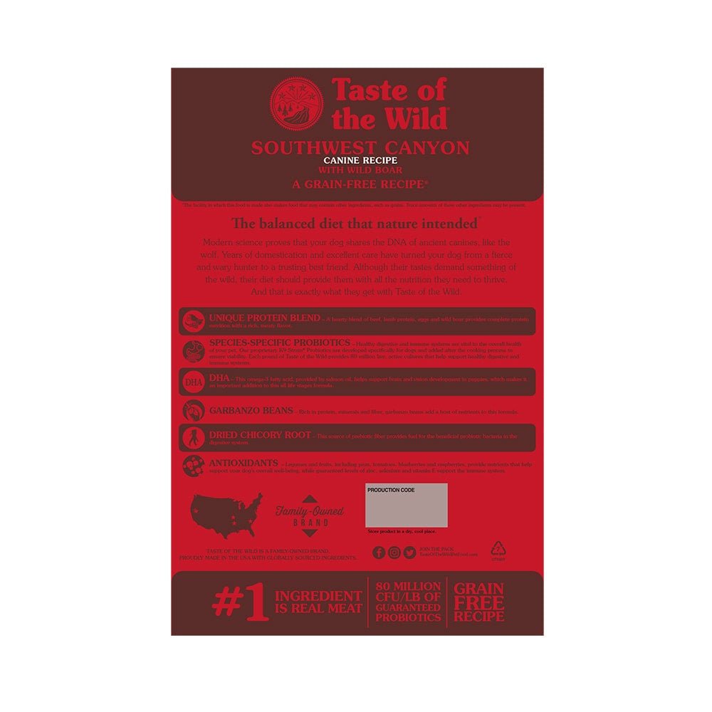 No se trata solo de alimentarlo, sino de ofrecerle una experiencia natural y nutritiva que respete su instinto y potencie su bienestar. Con Taste of the Wild Southwest Canyon, tu perro no solo come: vive con la energía, fuerza y espíritu salvaje que lleva dentro.
